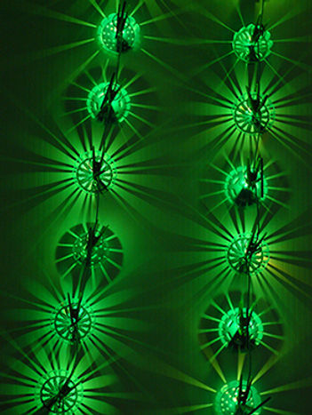 "Fleurs nocturnes", 2012-2017, objets plastiques, lumières vertes et ombres, dimensions variables