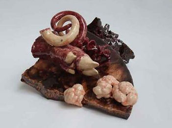 "Vanité dans un plat", terre cuite émaillée et oxydée, 55 cm x 23 cm, 2008